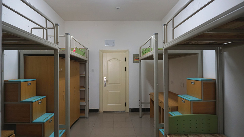 据了解,该校新装修改造的宜居寝室具备独立卫生间及热水淋浴设施,每间寝室都有空调,配备家用洗手台和梳妆镜,洗漱设施应有尽有。寝室一般为五人间,四个床位在上铺,有一个位于下铺,这也是出于有的同学可能腿脚不方便上下楼梯或者是不习惯上铺导致失眠的情况而考虑,特地分出一个下铺尽可能地为同学们着想。