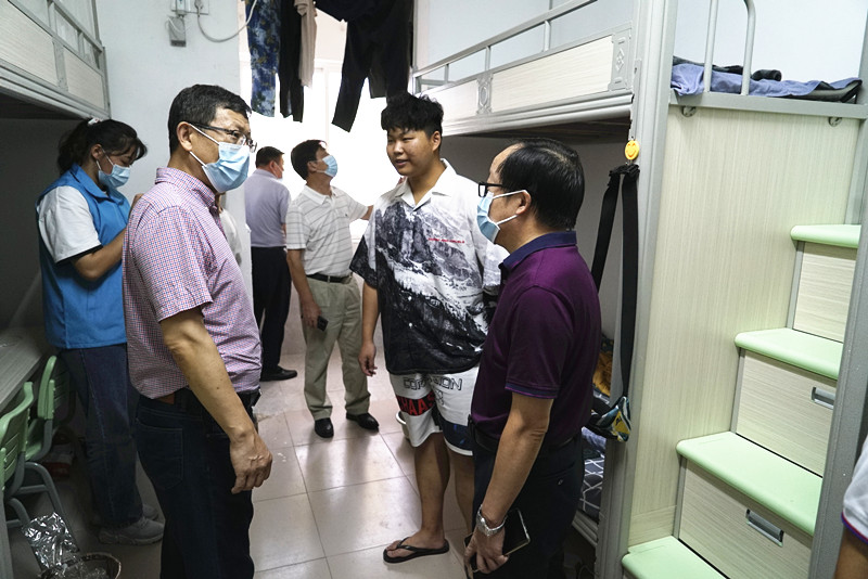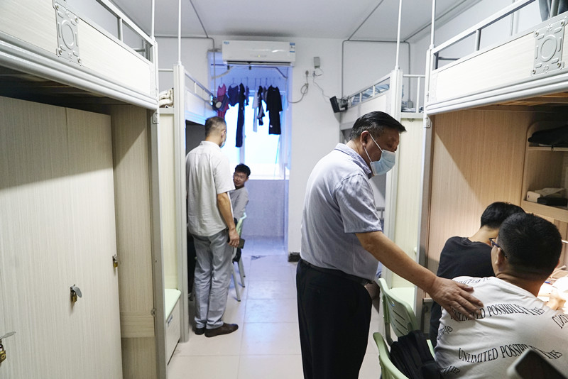 9月15日上午,该校党委书记汪继平、学校董事长彭元杰等校领导一行来到西六栋、西八栋等2021级新生寝室看望走访新生,了解新生报到后思想、生活情况。新生们纷纷对舒适的住宿环境表示称赞。汉语言2105班的姚远同学说:“武汉的天气十分炎热,在志愿者的带领下办理完各项事务后来到寝室,让人眼前一亮,各项设备和家具以及地砖、墙砖等都是崭新的,寝室空间十分透气,给我的第一感觉特别舒适。”