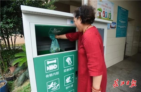 刘阿姨把厨余垃圾扔进分类垃圾箱 长江日报记者许巍巍 摄
