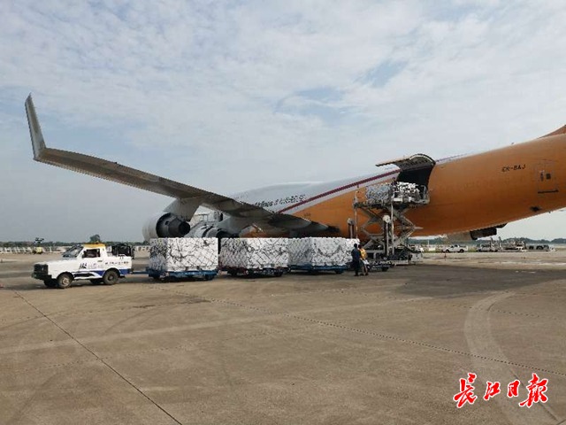长江日报融媒体6月25日讯 6月24日早上,18吨挪威三文鱼搭乘友和道通UW8004波音747全货机,在72小时内从卢森堡飞抵武汉天河机场,这是境外三文鱼首次乘全货机飞抵武汉。