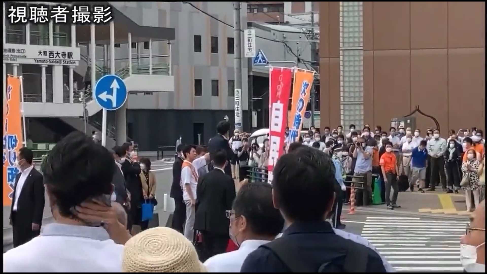 在开始演讲后不久,嫌疑人山上徹也从安倍身后3米处连开两枪,致其胸部和颈部中弹倒地。