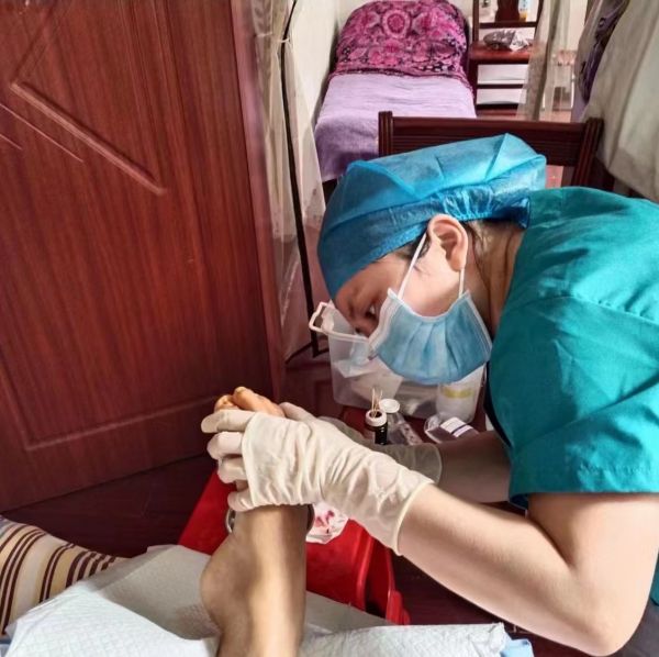 接下来的一个多月里,黄诗琪护士利用休息时间,往返朱女士家中十几次为她换药,换药次数由最开始的一天一次、两天一次到现在的一周两次,很快就能痊愈。每次换完药,黄诗琪还仔细地将伤口护理、饮食营养、皮肤清洁等知识一一告知家属。