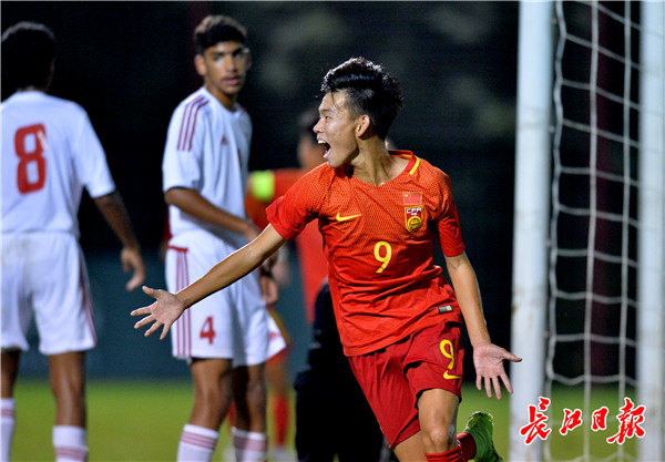 上届比赛中国队取得进球的兴奋时刻。记者喻志勇 摄