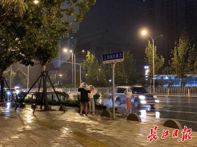 长江日报融媒体6月29日讯(记者李玉莹)6月28日,武汉今年梅雨期的第三轮强降雨来了!从傍晚开始,武汉就断断续续下起了大雨,在后湖大道路边,有3位市民因为忘带雨伞,把塑料袋套在了头上,这操作也是很机智了。不过,小编还是提醒大家在梅雨季要及时关注天气预报哦,出门该带伞还是要带的。