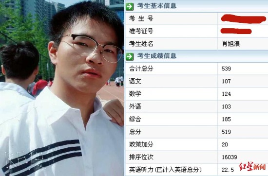 肖旭浪生前照和他的高考成绩