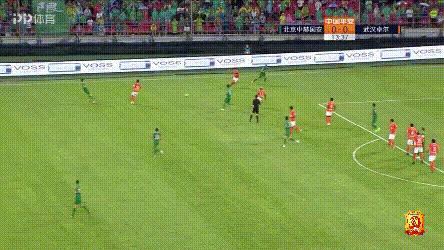 第33 分钟,李行禁区外的远射完成了上半时本队的第一脚射门,皮球打高。2分钟后,北京国安左路送出妙传,王子鸣甩头攻门击中门楣,武汉卓尔逃过一劫。
