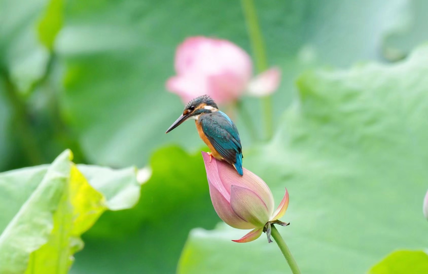 华中大青年园荷花塘中的翠鸟。 何岭松 摄
