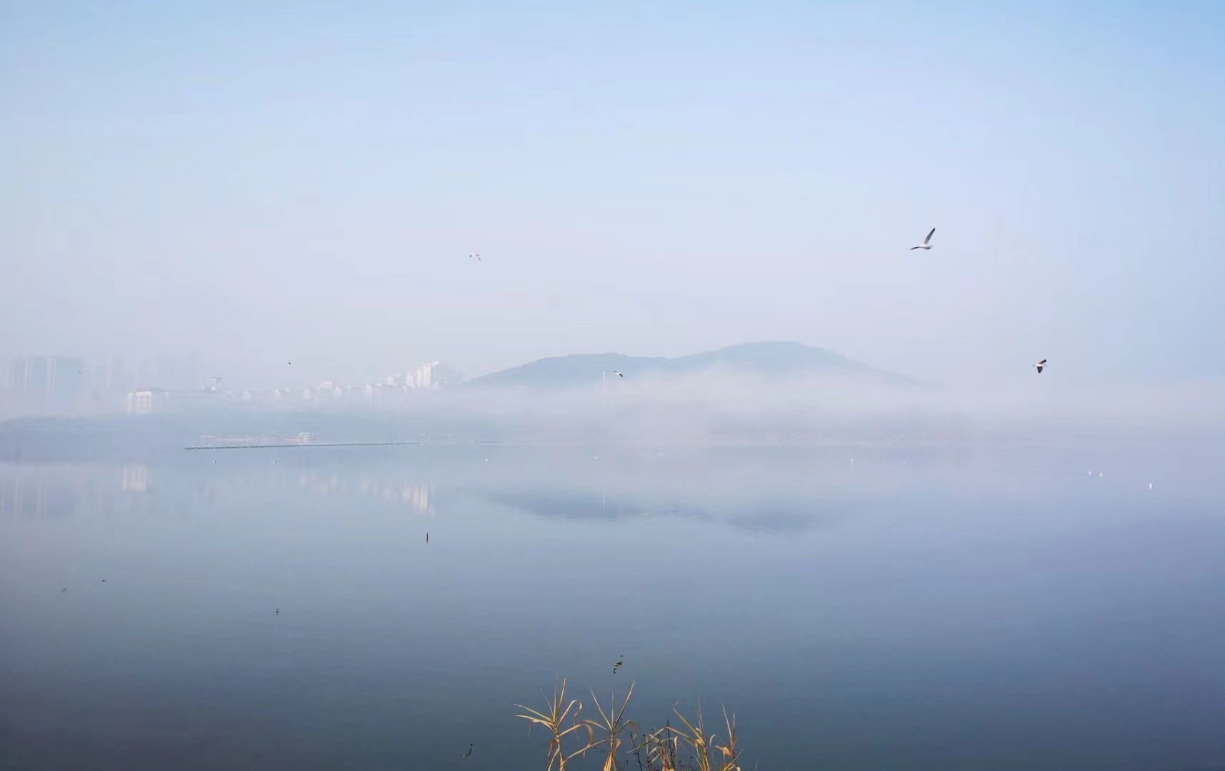 清晨喻家湖上的飞鸟。 何岭松 摄
