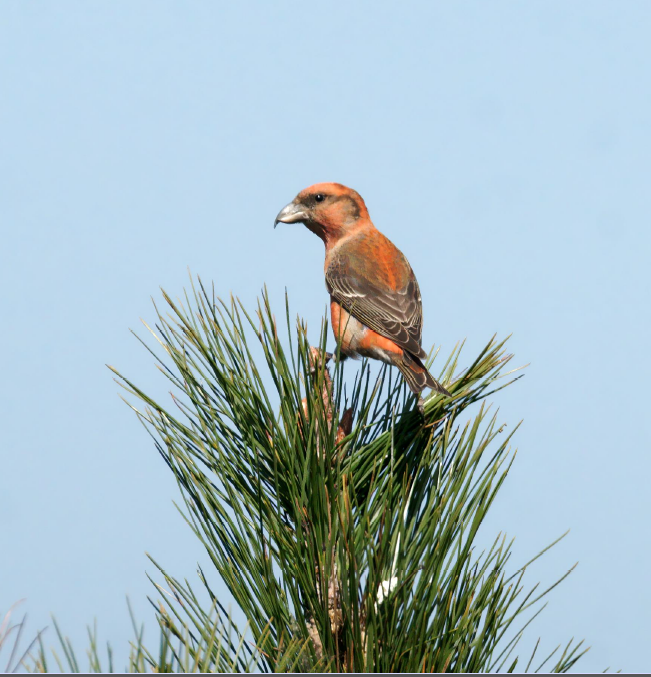 何岭松在华中大校园拍摄的红交嘴雀,这是它在武汉首次发现。