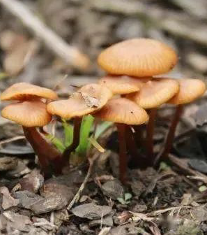 肉褐鳞环柄菇:子实体小,带浅肉粉红色,菌盖直径2—6厘米,菌肉薄,白色,菌褶离生,个头虽小,但与剧毒的鹅膏菌一样,含有鹅膏毒素,可以造成急性肝损害,甚至多器官衰竭,是个名副其实的“小个子大蘑王”。
