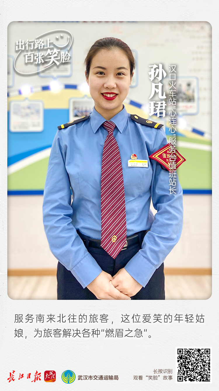 长江日报大武汉客户端7月13日讯(记者雷衎)7月13日,“城市精彩·你是主角——寻找出行路上百张笑脸”系列活动首批人物海报出炉。16张海报中,武汉交通人眉眼弯弯、笑意流露。笑容背后,是他们助力百姓顺畅出行的承诺与担当。市民可通过扫描海报上的二维码,进一步认识他们。