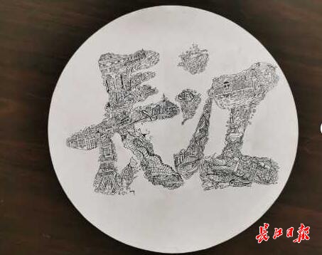 入校两年,金圣现跟着老师们在东湖、南湖、江滩等地采风写生,描绘了不少武汉的风景。今年5月,学校请美术专业学生以“字绘中国”为主题,把各地的民俗文化融入到地名设计中去。金圣现选择设计的地方就是武汉,把长江大桥、江汉关等地标建筑画进了“长江”二字。“我在武汉看到很多美景,也爱上武汉的热干面,发自内心喜欢这座城市,总想用画笔把武汉画出来”,金圣现说。