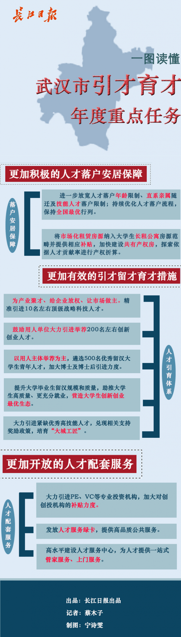 《武汉市引才育才年度重点任务及资金安排》,是在贯彻落实年初印发的《关于建立完善人才工作体系 推动武汉高质量发展的实施意见》基础上,聚焦产业发展、强化需求导向、突出市场作用,以抓落实为主线,为做好下一阶段人才工作明确的任务书、时间表和路线图。
