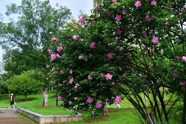 ◇ 现在才7月,菱角湖公园原本9月底开放的木芙蓉提前开放了,武汉园博园众乐苑周边200株海滨木槿花开繁茂,这些木槿属的花热烈绽放,一起扮靓武汉。