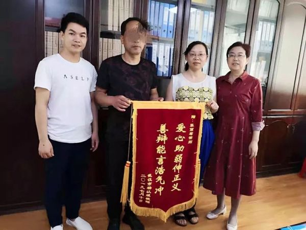 受援当事人杨以斌为硚口法律援助中心送来锦旗表达感谢