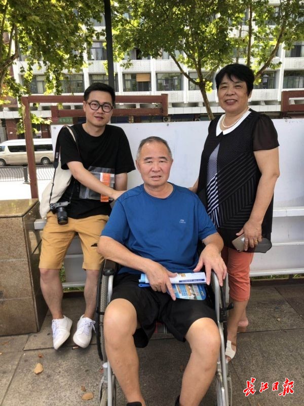 在武汉工作的周先博带着从湖南来的父母第一次看渡江节,父亲今年65岁因脑梗行动不便坐在轮椅上,但今天7点多就到达码头观看,因毛主席为湖南人且多次渡江,所以他们对渡江有一种故乡般的情结。(史凤玲)
