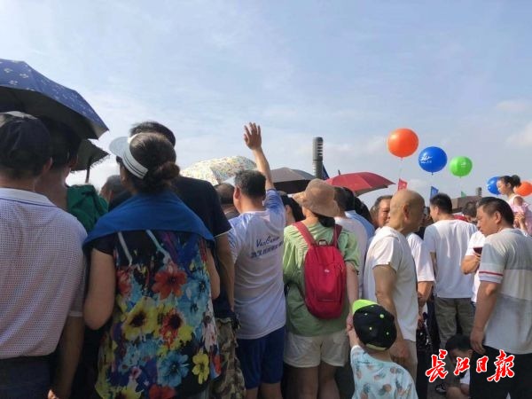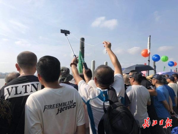 来自江汉区文体中心的武汉微马菱角湖队,有十几位队员登上“知音号”为横渡方阵助阵。队长冯润、李娅辛介绍,大家都来自江汉区,平时以徒步和慢跑锻炼为主,今天也有队友参加横渡长江。“每个武汉人记忆里都会有关于渡江的故事,能现场观看渡江节,这种自豪感油然而生。”(记者钟磬如)