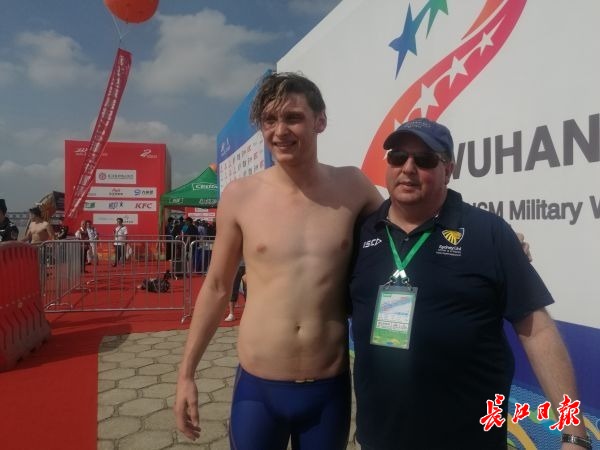 澳大利亚选手科马克·格思里来自悉尼大学游泳队,去年参加渡江节比赛获得了男子组第六名的成绩,今年却未能完成比赛。在解释今年失利的原因时,科马克说,水流太急,关键是自己判断失误,选择的路线和去年不一样,导致中途被湍急的水流冲偏了方向。陪同的教练保尔·布鲁斯在一旁为他鼓气,表示自己对科马克的表现总体还是挺满意的。两人均表示,明年他们还会参加渡江节,吸取教训,争取更好的成绩。