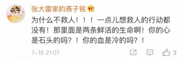 人民日报在微博发表评论:一起事故,两条生命。如果早早救人,何至于此?不是不能报警,也不是不能保护现场,但最重要的是救人,第一时间救人,争分夺秒救人,全力以赴救人。在生命面前,容不得半点犹疑,也容不得丝毫拖延,更容不得掣肘。请记住,敬畏生命别再等到悲剧发生后!