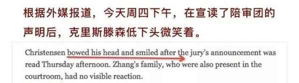 据外媒报道,今天周四下午,在宣读了陪审团的声明后,克里斯滕森低下头微笑着。