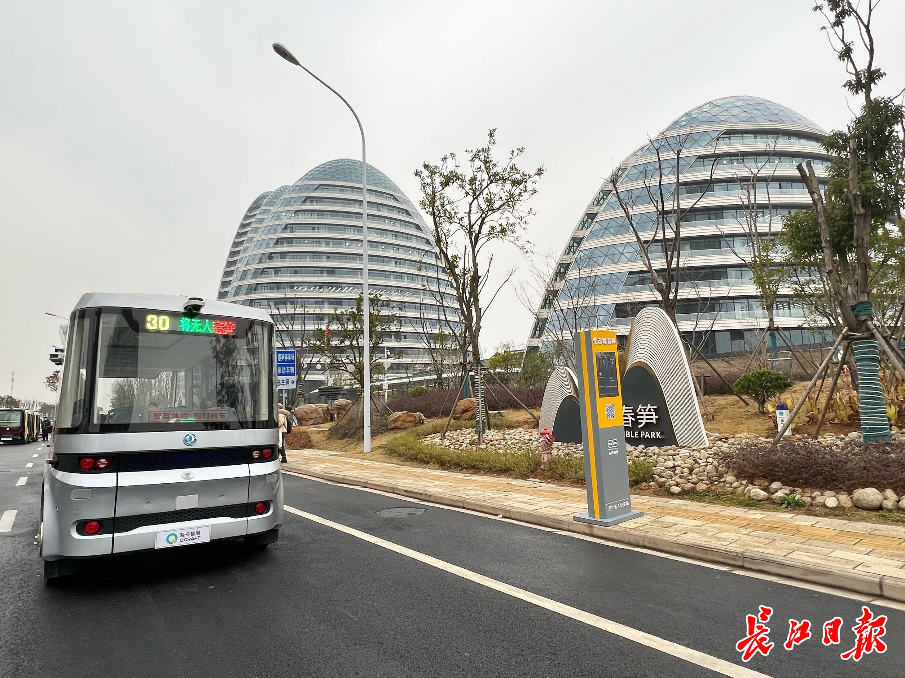 国内首个24小时服务的车路协同无人驾驶接驳巴士“春笋号”。记者郝天娇 摄