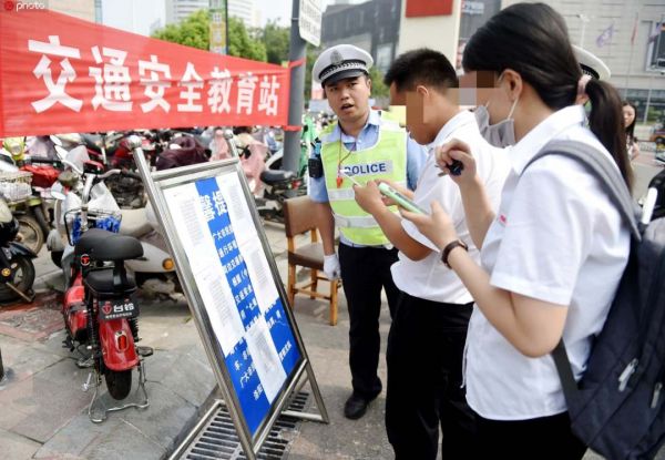 7月19日,河南省洛阳市,长春路交巡大队针对行人、非机动车交通违法又出新招儿——在丽新路辽宁路路口,违法者可选择发朋友圈曝光本人的违法行为并集赞,集满20个赞后可免受罚款、执勤处罚。(来源:东方IC)