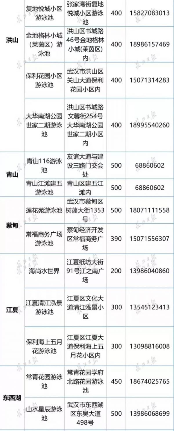游泳馆名单见下