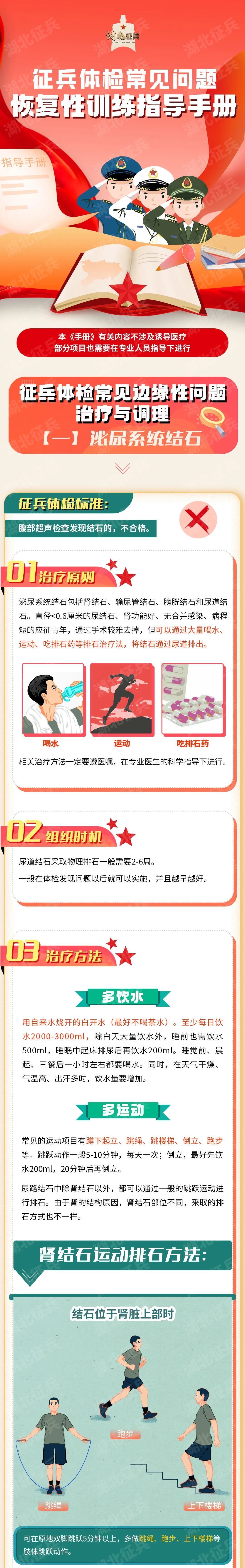 为帮助应征青年科学调理身体边缘性问题,更快修复身体机能,我们在武汉市已有实践的基础上,对部分常见征兵体检边缘性问题的治疗与调理统一进行了归纳整理,旨在帮助更多应征入伍意愿强烈的应征青年顺利通过征兵体检(有关内容不涉及诱导医疗,部分项目也需要在专业人员指导下进行)。
