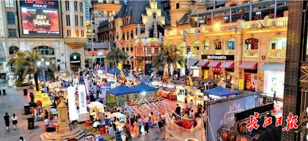19日傍晚,光谷步行街上人头攒动,不少市民、游客来逛夜市,品美食,享受夏日夜晚 记者苗剑 摄