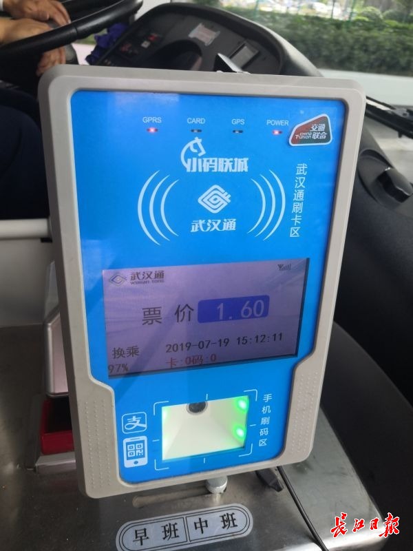 武汉一辆公交554路车的刷卡机上新设有“交通联合”标志 通讯员黄理权 摄