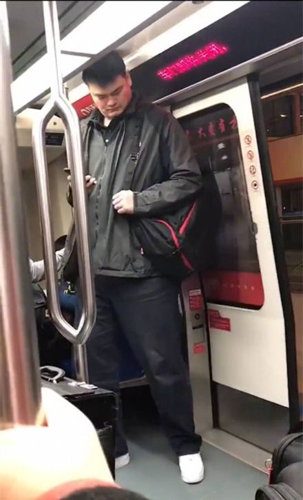 地铁上的姚明。