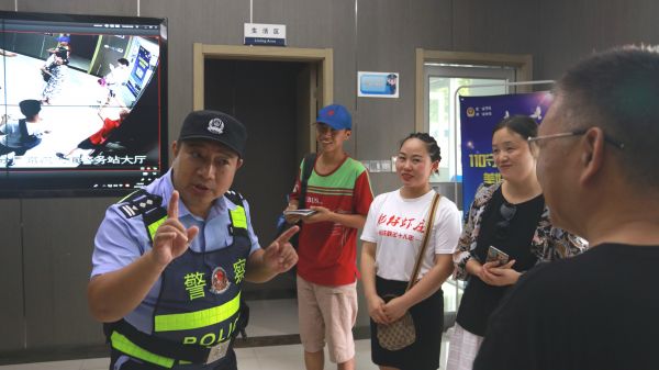 站长干兵向志愿者们介绍警务站功能 摄影 实习生曾梓威