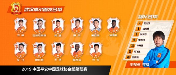 本场较量,官方给出的武汉卓尔是451阵型:守门员依旧是董春雨;明天、廖均健、姆比亚、刘毅将组成4人后卫线;中场方面,周通、埃弗拉、李行、王凯、刘云出战;作为单箭头顶上锋线的则是巴普蒂斯唐。