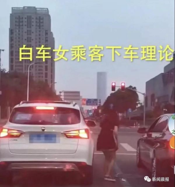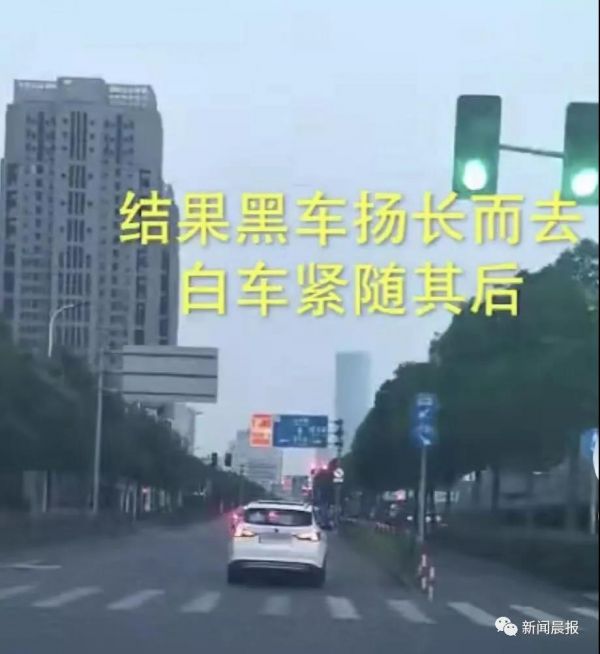 这时,黑色车副驾驶有人打开车门欲下车,不过绿灯亮起,白色车子扬长而去。