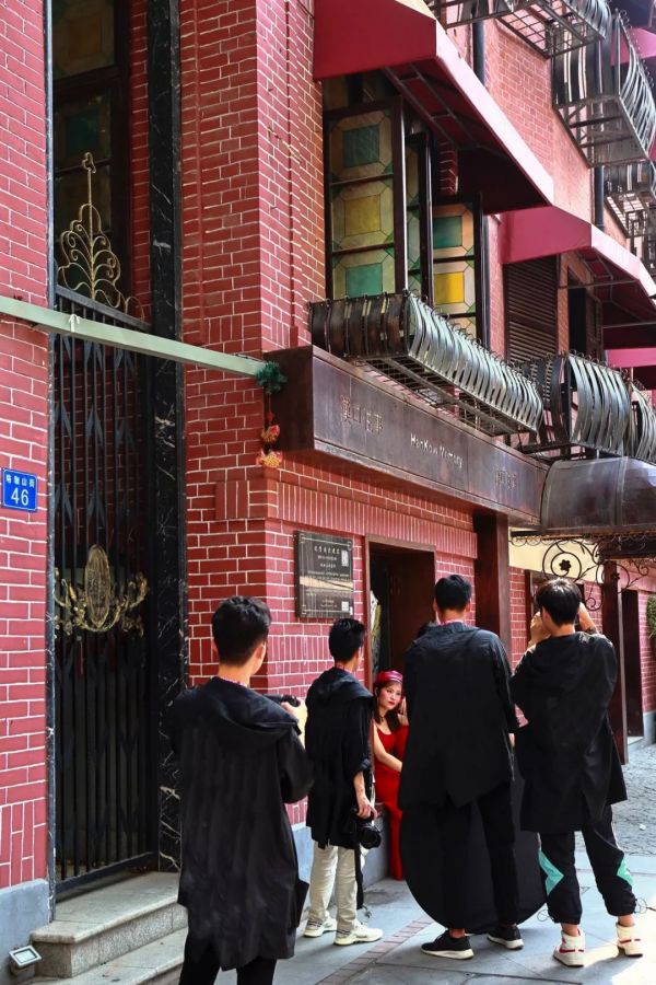 2016年9月27日,汉口黎黄陂路整顿修复完成,改造后,郁郁葱葱的大树避着阳光,红砖清水外墙与大拱门廊隐现。树荫下年轻人端着手冲咖啡,不远处情侣们在拍结婚照。