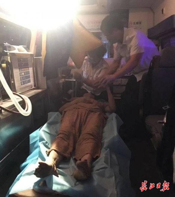 约20分钟后急救人员到场,判断老人长时间未进食导致虚弱,无生命危险。段新明协助医务人员将太婆安置妥当送至汉阳医院。