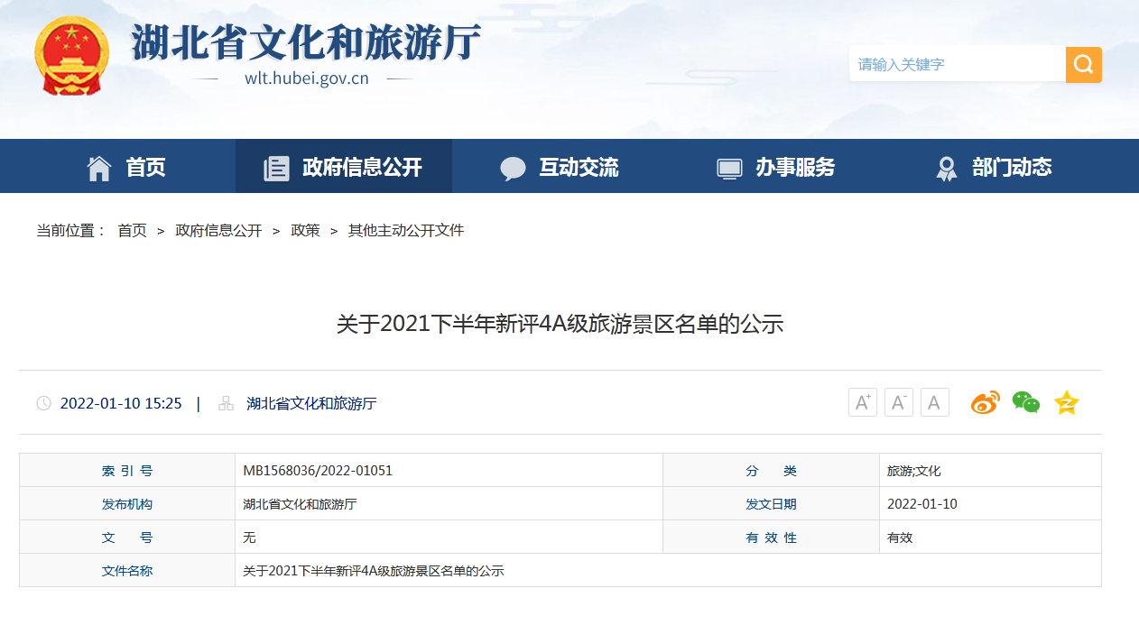 近日,湖北省文旅厅公布了一批国家4A级景区和省级旅游度假区,新增了8家国家4A级景区和6家省级旅游度假区。