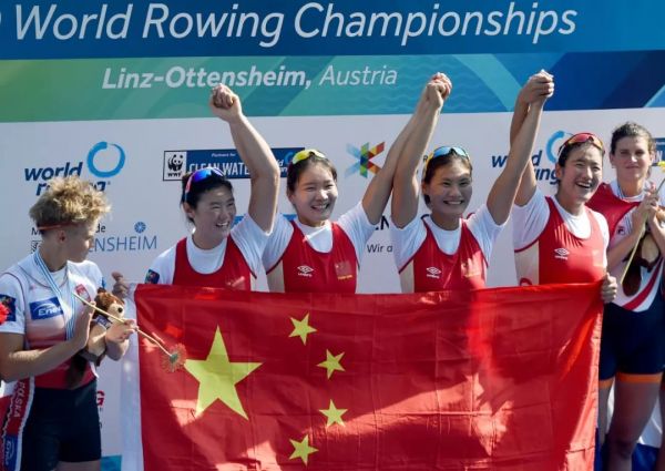 在昨日举行的2019年世界赛艇锦标赛女子四人双桨比赛中,由陈云霞、张灵、吕扬、崔晓桐组成的中国队以6分34秒65的成绩夺得金牌。
