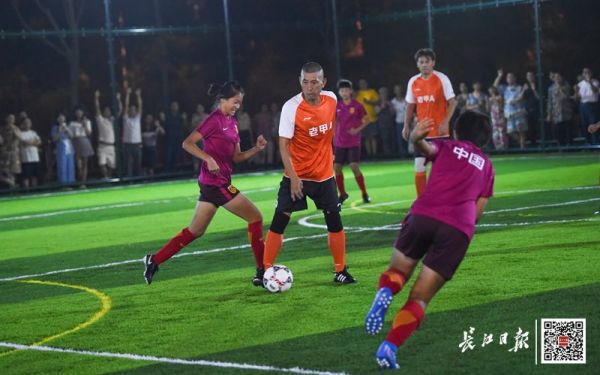 社区足球赛开幕式现场,老甲A队与中国U14女足国家队进行表演赛