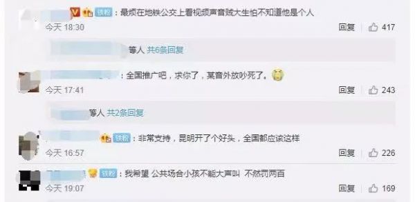 今年8月,昆明市发布了《昆明市城市轨道交通乘客守则(修订征求意见稿)》,向社会公开征求意见建议。其中提出,乘客不得在列车内大声喧哗、使用电子设备时不外放声音。
