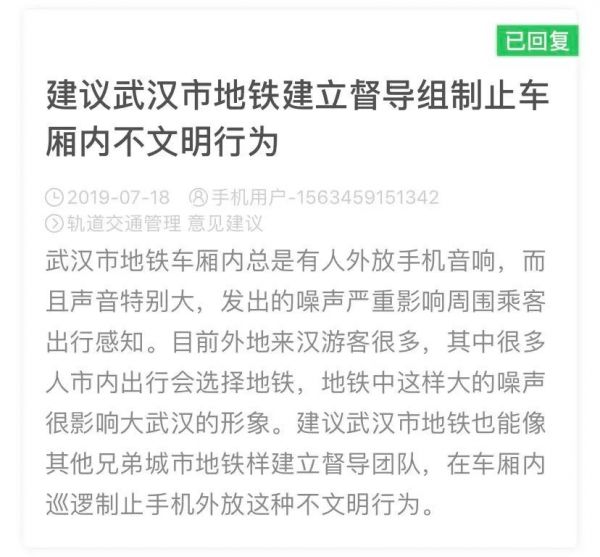 在长江网武汉城市留言板上发现,不少网友都提出过类似问题。网友徐先生称,地铁车厢里不时有人把手机声音外放,且声音很大,影响了周边乘客。网友陈女士认为,公交、地铁都是密闭空间,手机外放让车厢内环境嘈杂。有网友发出呼吁:让车厢“安静”下来!