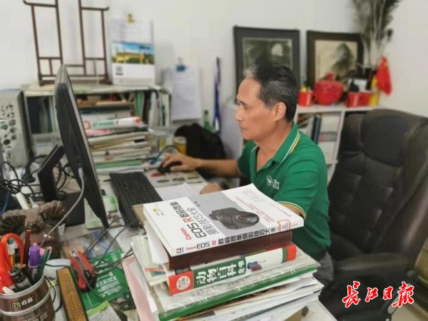 武汉动物园职工潘厚发正在设计门票。(记者郭可滢 供图)