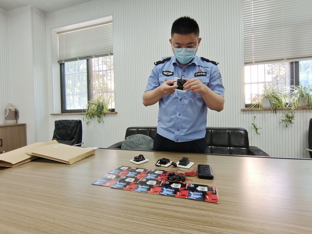 8月8日下午,经过前期调查获取相关证据后,洪山警方开始收网,民警前往沌口桂某家中将其一举抓获。此时,桂某刚刚将2个已经做好的用于偷拍的插座面板打包完毕,正准备快递发货。在桂某家中,民警搜出同类型的非法设备、配套的存储卡等配件。