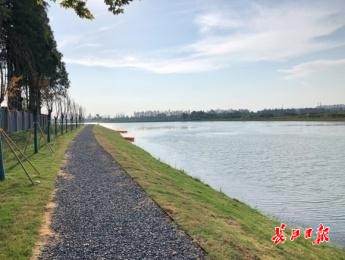 记者现场看到,整治后的杨泗泾湖面波光粼粼。水下水藻浮动,水面还有睡莲生长。边坡经过打理后已有片片绿草长出。一条整洁的环湖绿道将湖泊环绕。夕阳西下,不少市民在绿道上休闲散步。