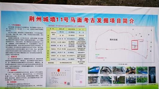 9月5日,荆州城墙11号马面修缮现场贴出告示,表明现有明代城墙下方,还迭压着五代砖筑城墙和宋代黏土夯筑城垣。