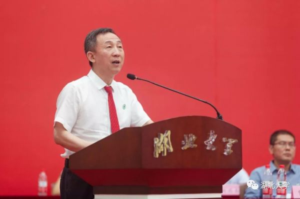 在致辞中,湖北大学党委书记尚钢通过分享自己的朋友圈,来告诉新生们如何成为一名带有湖大印记的湖大人。