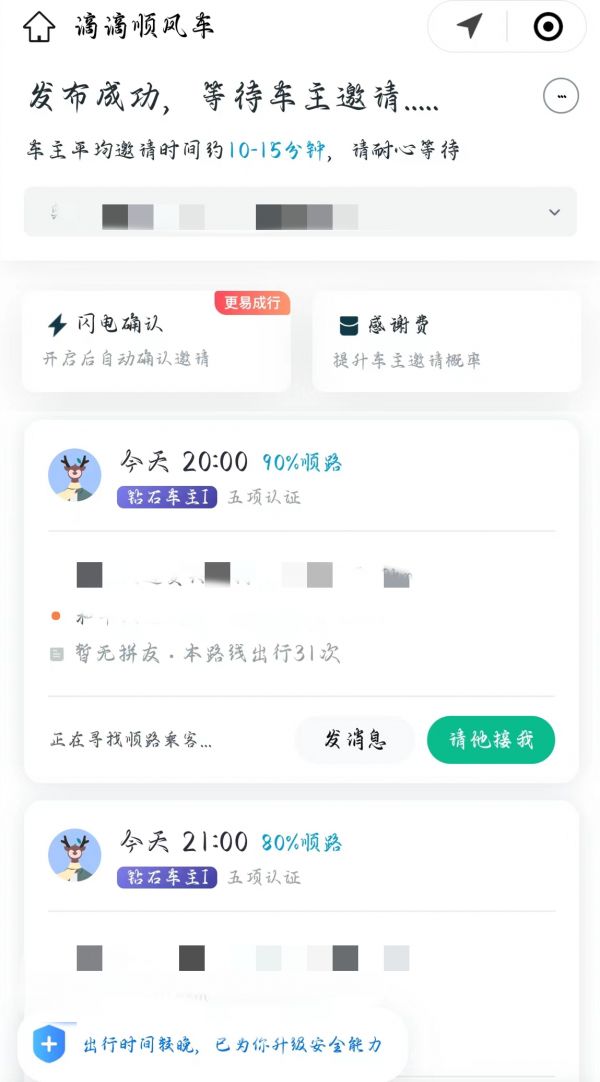 顺风车订单应由车主先发布,再由乘客选择匹配。