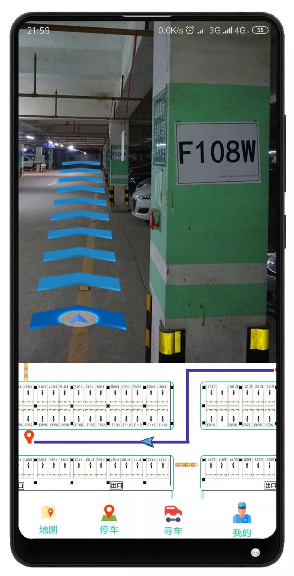 2、出了商场寻车时,我们只需要拿手机扫描身边任意的定位标志,相当于使用导航时的起点。有了终点和起点,系统就能生成导航路线。而且在导航过程中不断扫描,路线也会不断更新,直至寻车成功。