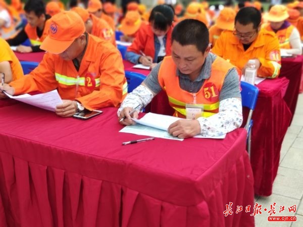 环卫选手正在参加理论知识竞赛(见习记者范佳昕 摄)