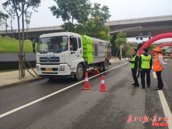 正在开展机扫车路面清扫收边作业竞赛(见习记者范佳昕 摄)